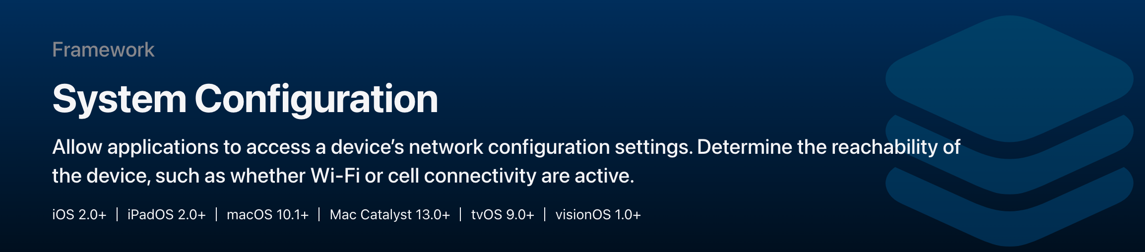 Apple Developer Documentation에서 SystemConfiguration을 살펴보면,